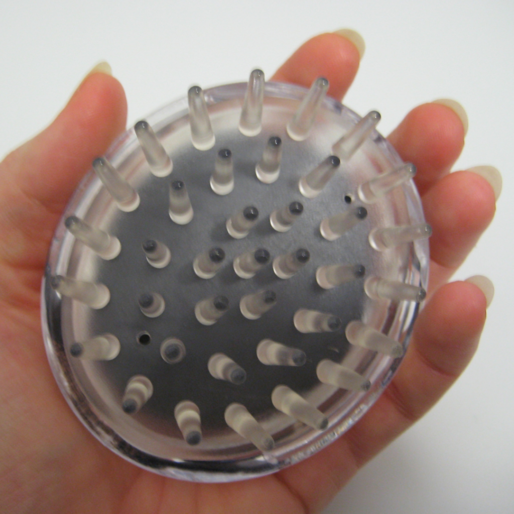 😅 Die Shampoobürste schaut leider nicht mehr ganz so hübsch aus, seit ich sie in der Dusche versehentlich habe fallen lassen. Der obere Teil ist zerbrochen und ich arbeite jetzt einfach nur mit dem „Bürstenkissen“ weiter, das funktioniert genauso gut. Dieses ist zum Glück bruchsicher.